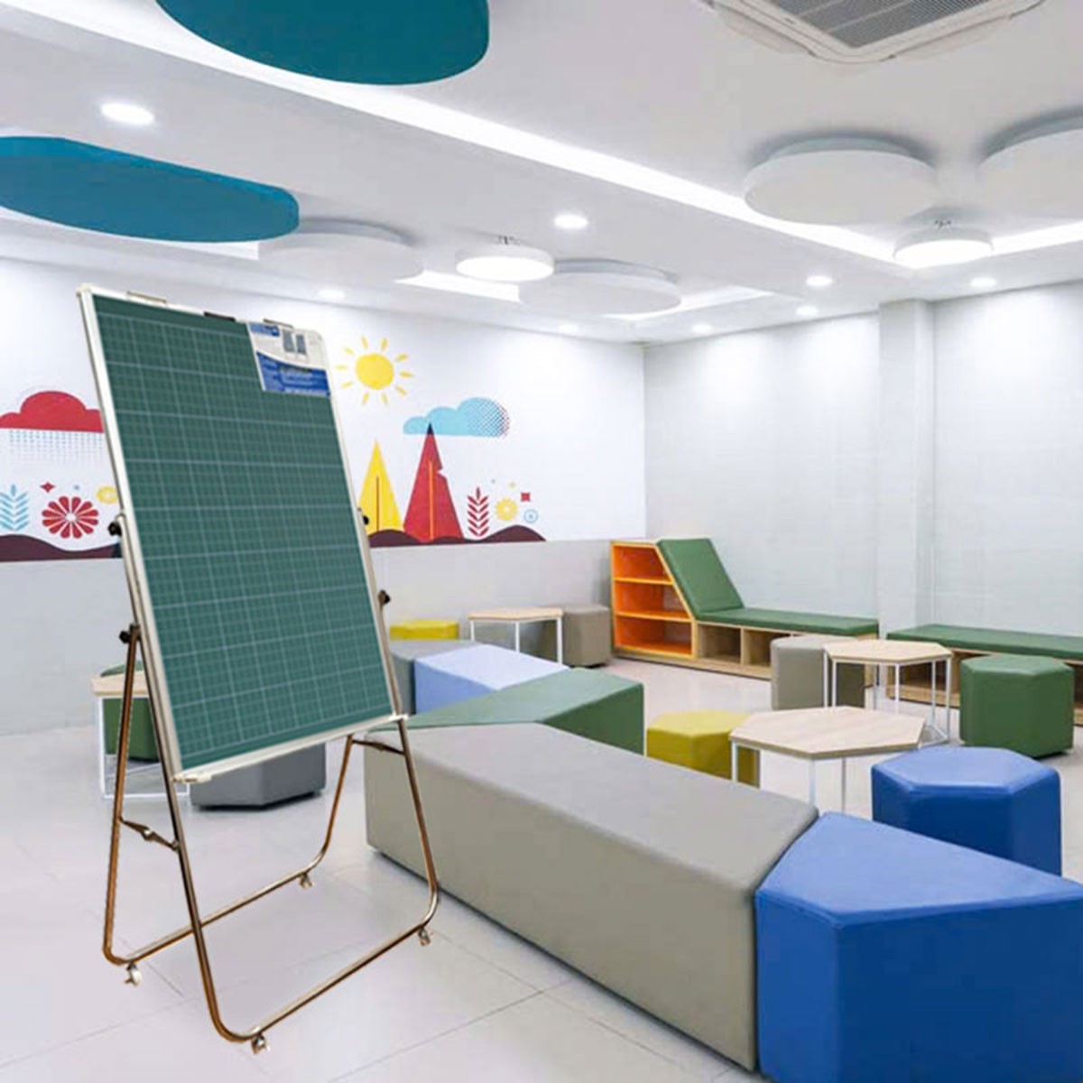 Bảng Flipchart chân inox viết bút lông từ Hàn Quốc với mặt bảng được nhập khẩu từ Hàn Quốc và được in lụa đường ô ly tập giúp bé luyện chữ dễ dàng.